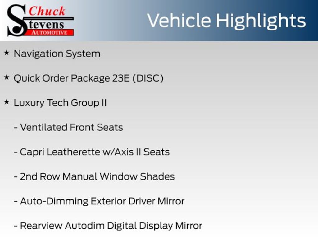 Chuck's discounted price includes a $2,500 trade equity. To be eligible, customers must trade in a vehicle with an appraised value of at least $2,500. All prices are based on dealership financing and include a $1,000 finance coupon. Please consult the dealer for complete details.