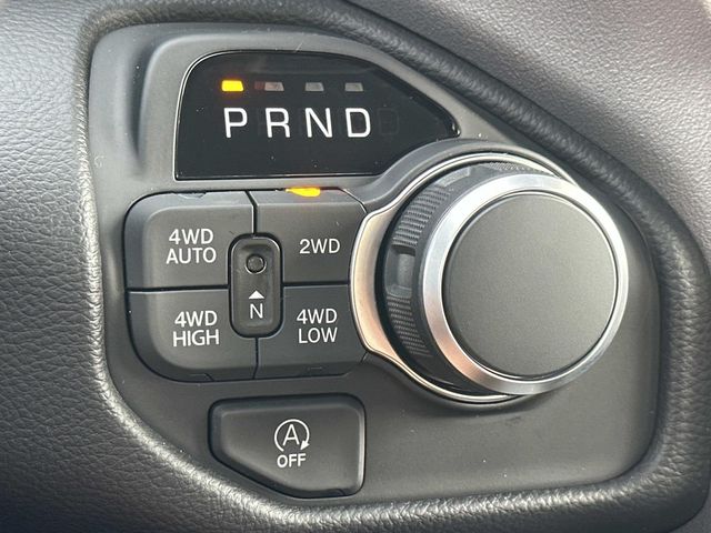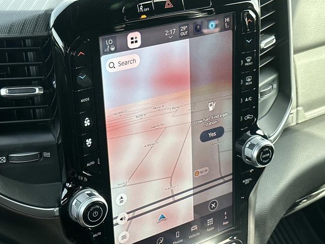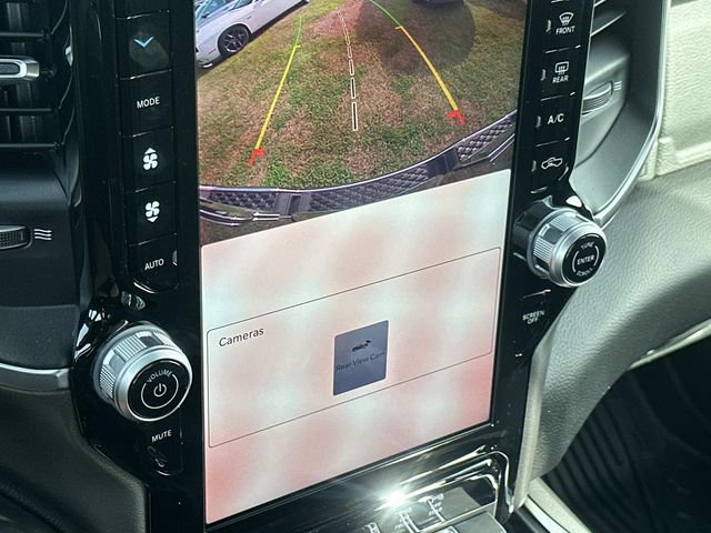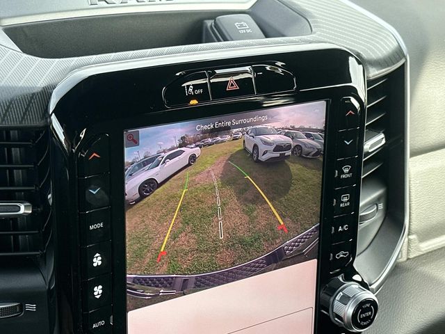The interior of this Ram 1500 is both stylish and comfortable, with heated front seats, a heated steering wheel, and a spacious, well-appointed cabin. The 12-inch touchscreen display provides intuitive control over the vehicle's infotainment system, which includes Apple CarPlay and a suite of connected services.
