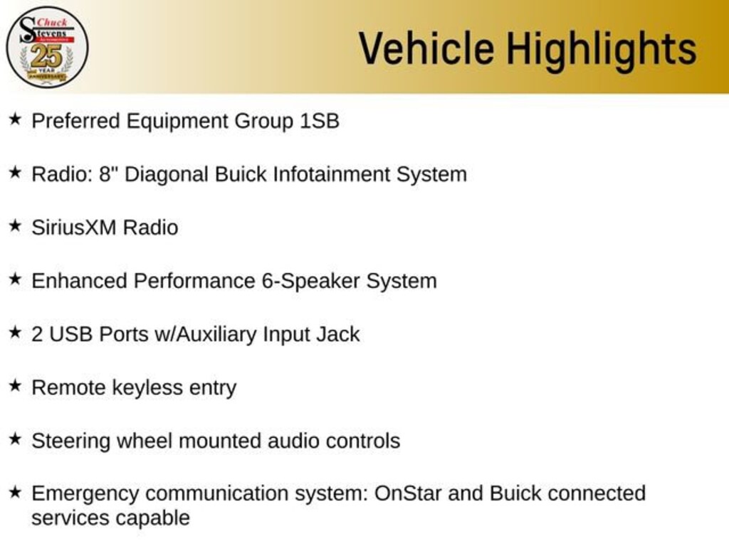 - Emergency SOS Capable : OnStar and Buick connected services capable vehicle integrated emergency SOS system