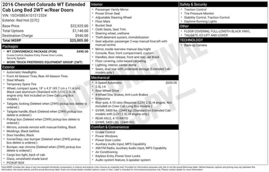 Used 2016 Chevrolet Colorado Truck Work Truck