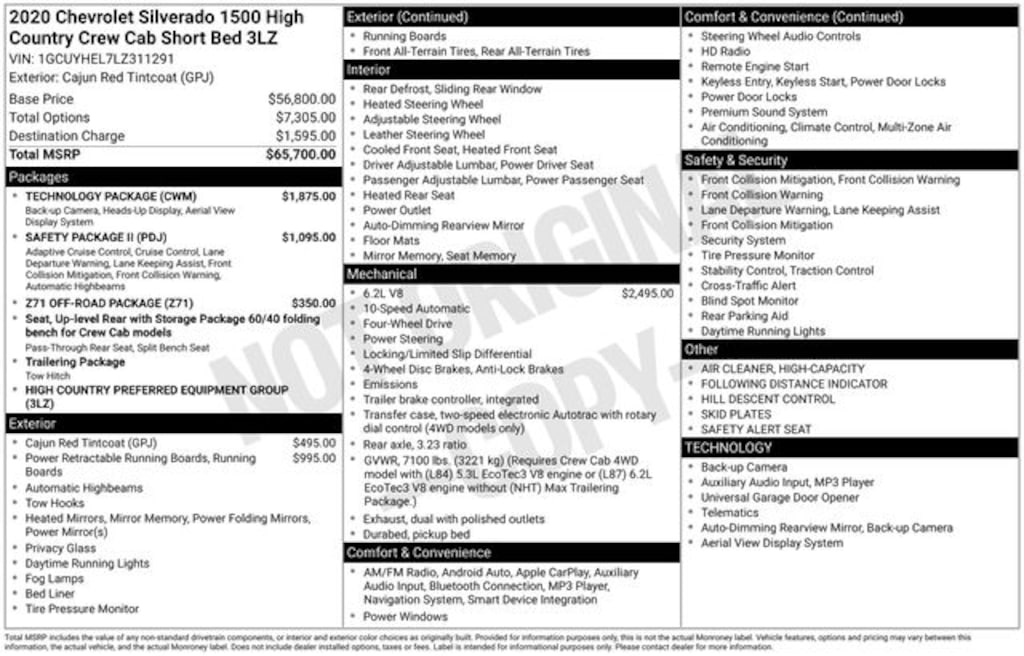 2020 Chevrolet Silverado 1500 High Country 4D Crew Cab High Country Cajun Red Tintcoat 4WD EcoTec3 6.2L V8 10-Speed Automatic