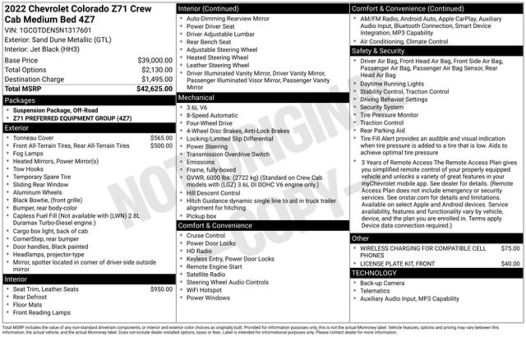 Welcome to Chuck Stevens Dodge Chrysler Jeep Ram Fiat located on HWY 31 South, Bay Minette Alabama. We are home of The Lifetime Powertrain Warranty at no additional cost. Grab a great deal with our low-price guarantee on this 2022 Chevrolet Colorado while we still have it. At Chuck Stevens CDJRF our Pre-Owned vehicles have been fully inspected and reconditioned by a certified technician. The Sand Dune Metallic 2022 Chevrolet Colorado with Black Leather interior is a fantastic choice.