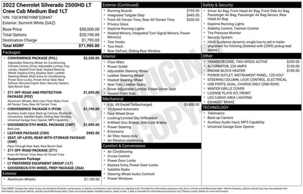 2022 Chevrolet Silverado 2500HD LT 4D Crew Cab LT Summit White 4WD Duramax 6.6L V8 Turbodiesel 10-Speed Automatic