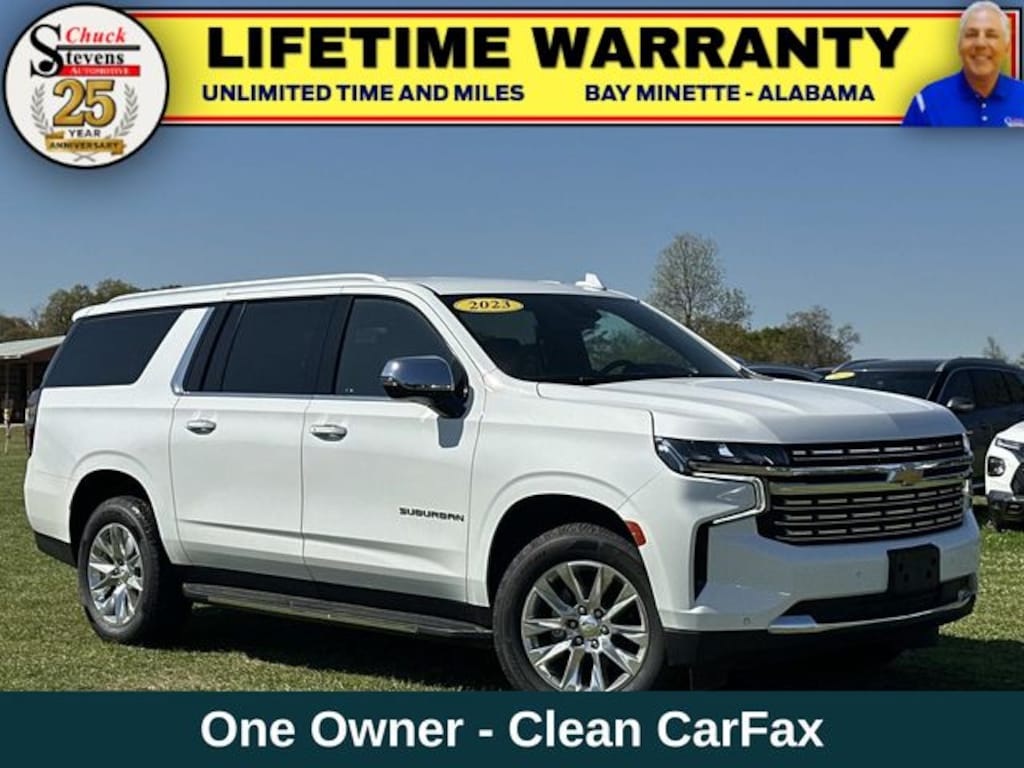 Welcome to Chuck Stevens Dodge Chrysler Jeep Ram Fiat located on HWY 31 South, Bay Minette Alabama. We are home of The Lifetime Powertrain Warranty at no additional cost. Grab a great deal with our low-price guarantee on this 2023 Chevrolet Suburban Premier while we still have it. At Chuck Stevens CDJRF our Pre-Owned vehicles have been fully inspected and reconditioned by a certified technician. The White 2023 Chevrolet Suburban Premier with Jet Black interior is a wonderful choice.