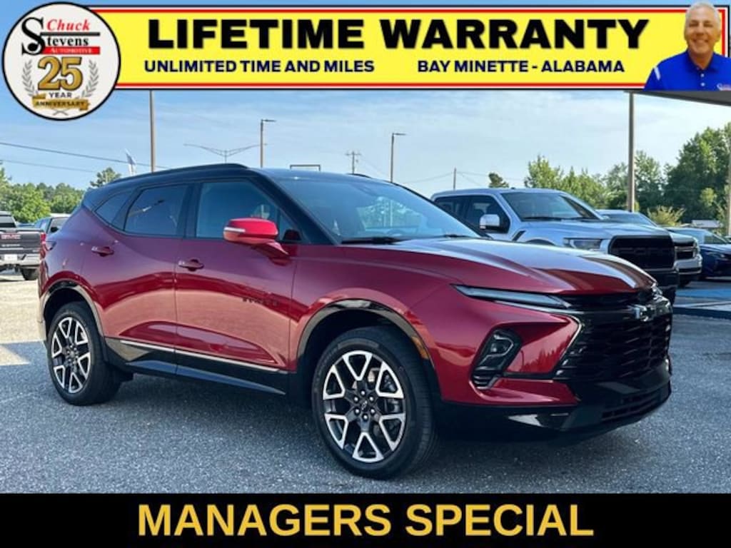 Welcome to Chuck Stevens Chevrolet located on HWY 31 South, Bay Minette Alabama. We are home of Lifetime Powertrain Warranty. A Lifetime Powertrain Warranty at no additional cost. Grab a great deal with our low-price guarantee on this 2024 Chevrolet Blazer while we still have it. At Chuck Stevens Chevrolet our Pre-Owned vehicles have been fully inspected and reconditioned by a certified technician. The Radiant Red Tintcoat 2024 Chevrolet Blazer with Jet Black With Red Accents Leather interior is a superb choice.The online price includes a $2,500 Cash Down or trade equity. To qualify, customers must trade in a vehicle with a minimum appraised value of $2,500 or Cash Down. All prices reflect dealership financing and include a $1,000 finance coupon. See dealer for full details.CARFAX One-Owner. Clean CARFAX.Odometer is 3380 miles below market average! 19/26 City/Highway MPG2024 Chevrolet Blazer RS Radiant Red Tintcoat 4D Sport Utility RS FWD 3.6L V6 SIDI 9-Speed Automatic with OverdriveAlloy wheels, AM/FM radio: SiriusXM with 360L, Automatic temperature control, Black 2-Tone Roof, Bose Premium 8-Speaker Audio System Feature, Emergency communication system: OnStar and Chevrolet connected services capable, Front dual zone A/C, Fully automatic headlights, Garage door transmitter, Heated front seats, Heated Steering Wheel, Heated steering wheel, Navigation System, Perforated Leather-Appointed Seat Trim, Power Liftgate, Preferred Equipment Group 1RS, Premium audio system: Chevrolet Infotainment 3 Premium, Radio: Chevrolet Infotainment 3 Premium System, Remote keyless entry, SiriusXM w/360L, Steering wheel mounted audio controls, Telescoping steering wheel, Tilt steering wheel, Wheels: 20 Technical Gray Aluminum.LIFETIME POWERTRAIN WARRANTY PROGRAM is included at no additional charge for all vehicles that have less than 80,000 miles. It is one of the most comprehensive powertrain warranty programs in the market. See dealer for details.