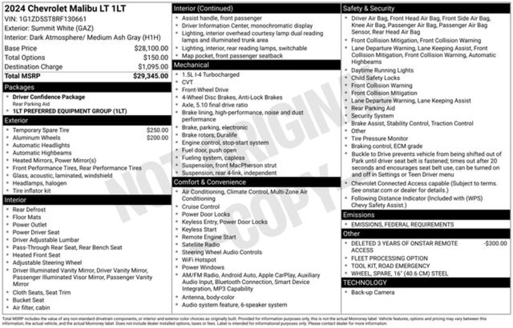 Take advantage of our low-price guarantee on this 2024 Chevrolet Malibu. This Malibu comes finished in Summit White with a Dark Atmosphere/ Medium Ash Gray interior, making it a wonderful choice for your next vehicle.