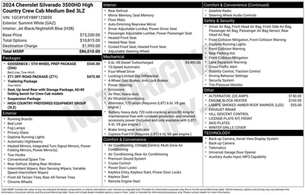 2024 Chevrolet Silverado 3500HD High Country 4D Crew Cab High Country Summit White 4WD Duramax 6.6L V8 Turbodiesel 10-Speed Automatic