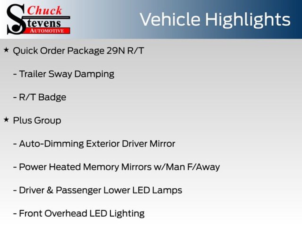 At Chuck Stevens Ford, we also include our exclusive Lifetime Powertrain Warranty at no additional cost. Serviceable at any certified repair facility nationwide.