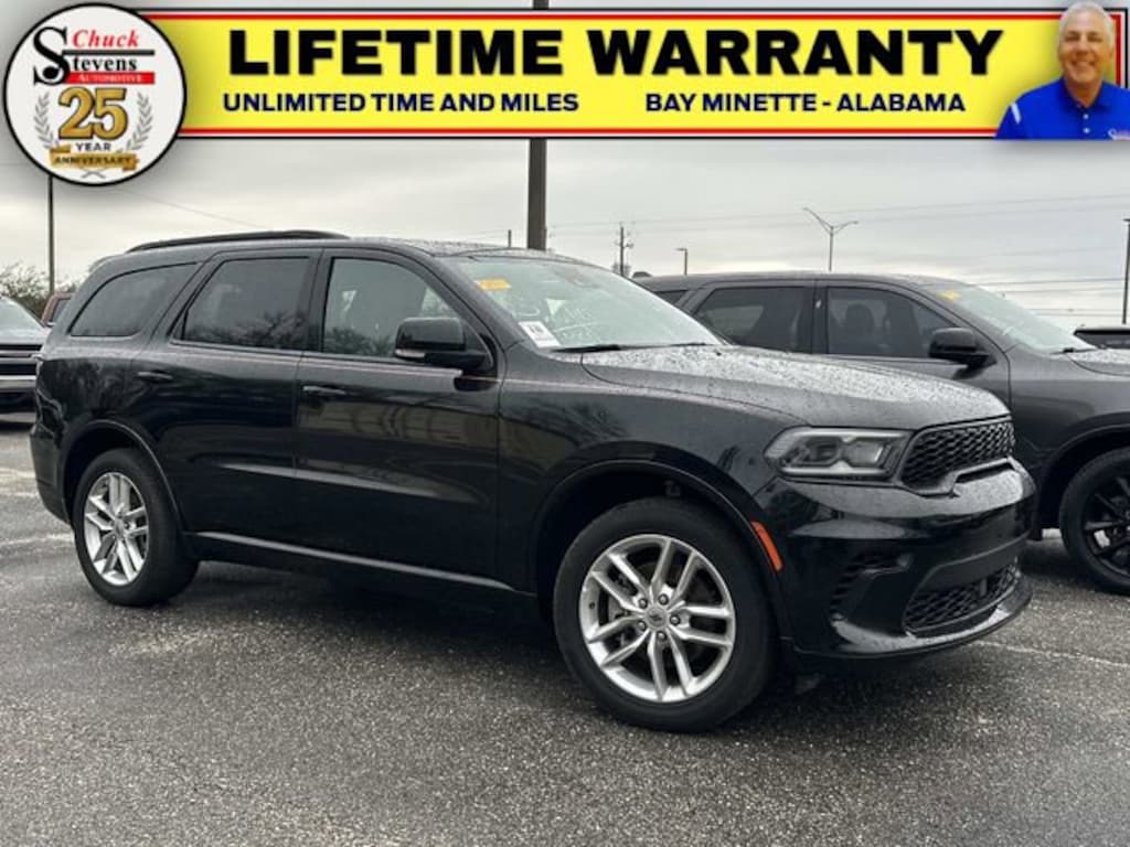 Welcome to Chuck Stevens Chevrolet located on HWY 31 South, Bay Minette Alabama. We are home of Lifetime Powertrain Warranty. A Lifetime Powertrain Warranty at no additional cost.Grab a great deal with our low-price guarantee on this 2024 Dodge Durango GT Plus while we still have it. At Chuck Stevens Chevrolet our Pre-Owned vehicles have been fully inspected and reconditioned by a certified technician. The Black 2024 Dodge Durango GT Plus with Black interior is a wonderful choice.The online price includes a $2,500 Cash Down or trade equity. To qualify, customers must trade in a vehicle with a minimum appraised value of $2,500 or Cash Down. All prices reflect dealership financing and include a $1,000 finance coupon. See dealer for full details.This 2024 Dodge Durango GT Plus is equipped with a powerful 3.6L V6 24V VVT engine and an 8-Speed Automatic transmission, providing a smooth and responsive driving experience. With its All-Wheel Drive capability, you'll have the confidence to tackle any road conditions, whether it's navigating through inclement weather or exploring off-the-beaten-path adventures.Boasting an impressive array of features, this Durango GT Plus is designed to elevate your driving experience. Enjoy the convenience of the 10.1 Touchscreen Display, which seamlessly integrates with your smartphone through Apple CarPlay and Android Auto. Stay connected on the go with the built-in 4G LTE Wi-Fi Hotspot and enjoy the premium audio experience of the SiriusXM with 360L.For added comfort and convenience, this Durango GT Plus comes equipped with heated second-row seats, a power sunroof, and a power liftgate. The ventilated front seats and memory settings for the driver's seat, mirrors, and steering wheel ensure you can find your perfect driving position every time.Safety is also a top priority, with features like Adaptive Cruise Control with Stop, Full Speed Forward Collision Warning Plus, and Blind Spot Monitoring with Trailer Detection keeping you and your passengers secure on the road.With its impressive capabilities, thoughtful amenities, and striking exterior design, this 2024 Dodge Durango GT Plus is a remarkable SUV that will elevate your driving experience. We invite you to come in and take it for a test drive to see for yourself why this Durango is the perfect addition to your lifestyle.LIFETIME POWERTRAIN WARRANTY PROGRAM is included at no additional charge for all vehicles that have less than 80,000 miles. It is one of the most comprehensive powertrain warranty programs in the market. See dealer for details.