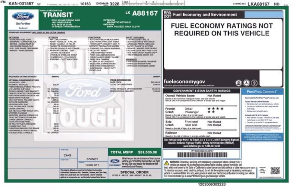 Welcome to Chuck Stevens Chevrolet located on HWY 31 South, Bay Minette Alabama. We are home of Lifetime Powertrain Warranty. A Lifetime Powertrain Warranty at no additional cost. Grab a great deal with our low-price guarantee on this 2020 Ford Transit-350 while we still have it. At Chuck Stevens Chevrolet our Pre-Owned vehicles have been fully inspected and reconditioned by a certified technician. The Magnetic 2020 Ford Transit-350 with Gray Cloth interior is a terrific choice.The online price includes a $2,500 Cash Down or trade equity. To qualify, customers must trade in a vehicle with a minimum appraised value of $2,500 or Cash Down. All prices reflect dealership financing and include a $1,000 finance coupon. See dealer for full details.Clean CARFAX.Recent Arrival!2020 Ford Transit-350 Base Magnetic 3D Cargo Van AWD V6 10-Speed Automatic with OverdriveLIFETIME POWERTRAIN WARRANTY PROGRAM is included at no additional charge for all vehicles that have less than 80,000 miles. It is one of the most comprehensive powertrain warranty programs in the market. See dealer for details.