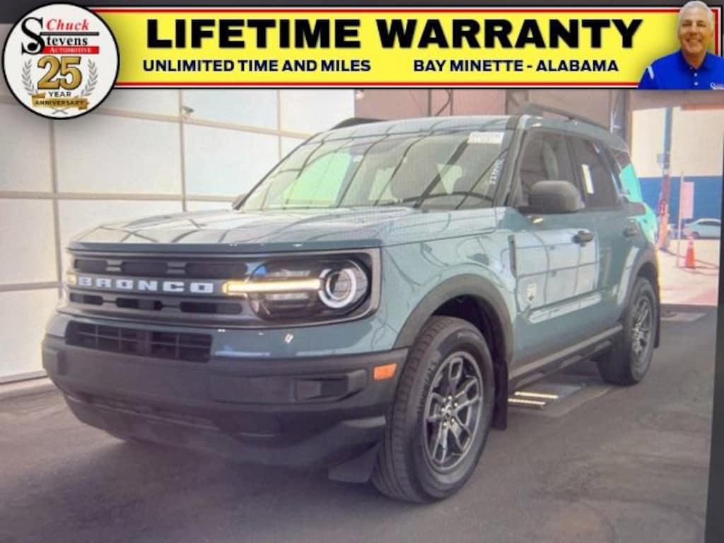 Welcome to Chuck Stevens Chevrolet located on HWY 31 South, Bay Minette Alabama. We are home of Lifetime Powertrain Warranty. A Lifetime Powertrain Warranty at no additional cost. Grab a great deal with our low-price guarantee on this 2022 Ford Bronco Sport while we still have it. At Chuck Stevens Chevrolet our Pre-Owned vehicles have been fully inspected and reconditioned by a certified technician. The Area 51 2022 Ford Bronco Sport with Ebony Cloth interior is a terrific choice.The online price includes a $2,500 Cash Down or trade equity. To qualify, customers must trade in a vehicle with a minimum appraised value of $2,500 or Cash Down. All prices reflect dealership financing and include a $1,000 finance coupon. See dealer for full details.Recent Arrival! 25/28 City/Highway MPG2022 Ford Bronco Sport Big Bend Area 51 4D Sport Utility Big Bend 4WD 1.5L EcoBoost 8-Speed AutomaticLIFETIME POWERTRAIN WARRANTY PROGRAM is included at no additional charge for all vehicles that have less than 80,000 miles. It is one of the most comprehensive powertrain warranty programs in the market. See dealer for details.