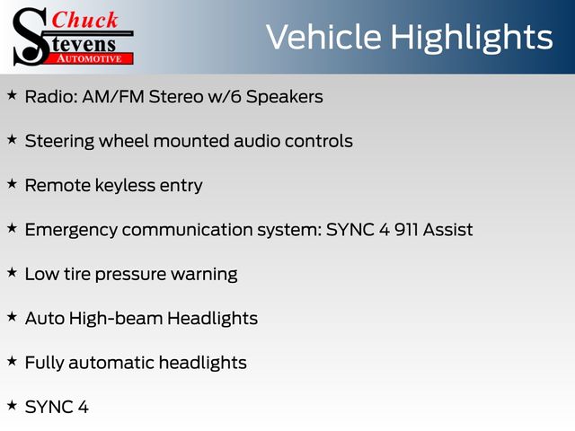 At Chuck Stevens Ford, we also include our exclusive Lifetime Powertrain Warranty at no additional cost. Serviceable at any certified repair facility nationwide.