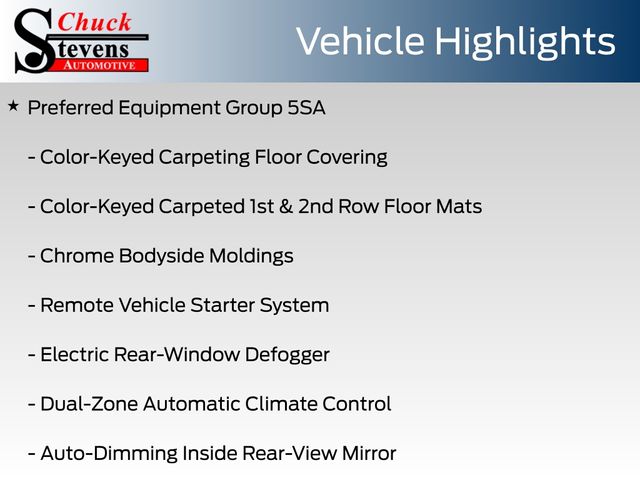At Chuck Stevens Ford, we also include our exclusive Lifetime Powertrain Warranty at no additional cost. Serviceable at any certified repair facility nationwide.