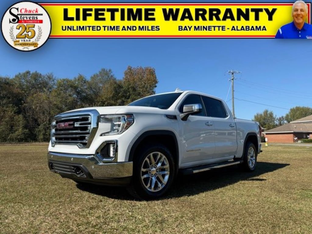 Welcome to Chuck Stevens Dodge Chrysler Jeep Ram Fiat located on HWY 31 South, Bay Minette Alabama. We are home of The Lifetime Powertrain Warranty at no additional cost. Grab a great deal with our low-price guarantee on this 2019 GMC Sierra 1500 SLT while we still have it. At Chuck Stevens CDJRF our Pre-Owned vehicles have been fully inspected and reconditioned by a certified technician. The White 2019 GMC Sierra 1500 SLT with Perforated Leather-Appointed Seat Trim interior is a wonderful choice.