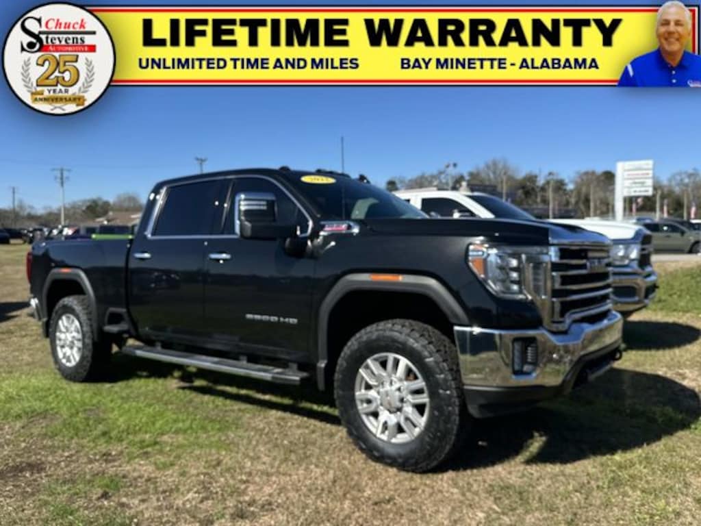 Welcome to Chuck Stevens Dodge Chrysler Jeep Ram Fiat located on HWY 31 South, Bay Minette Alabama. We are home of The Lifetime Powertrain Warranty at no additional cost. Grab a great deal with our low-price guarantee on this 2022 GMC Sierra 2500HD SLT while we still have it. At Chuck Stevens CDJRF our Pre-Owned vehicles have been fully inspected and reconditioned by a certified technician. The Black 2022 GMC Sierra 2500HD SLT with Ebony Twilight Metallic interior is a wonderful choice.
