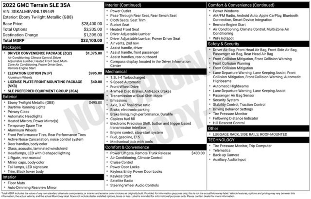 At Chuck Stevens CDJRF, we're committed to providing our customers with the best possible shopping experience. That's why we stand behind this 2022 GMC Terrain SLE with our Lifetime Powertrain Warranty, included at no additional cost. Hurry in and take this exceptional SUV for a test drive today. We're confident you'll be impressed by its exceptional value and uncompromising quality.