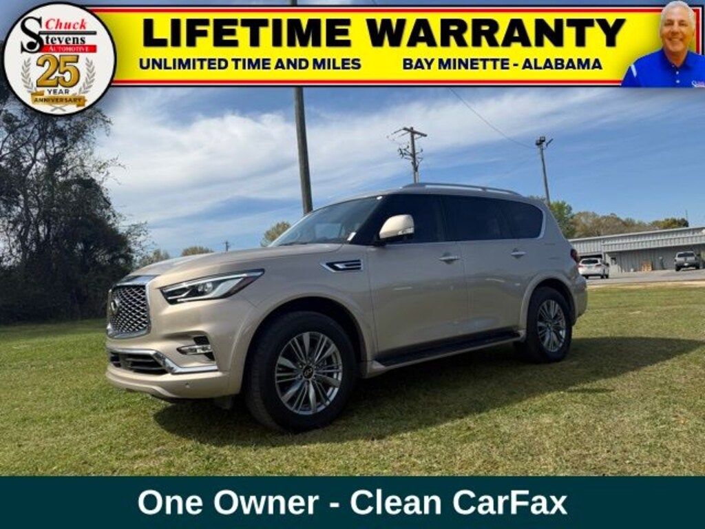 Welcome to Chuck Stevens Dodge Chrysler Jeep Ram Fiat located on HWY 31 South, Bay Minette Alabama. We are home of The Lifetime Powertrain Warranty at no additional cost. Grab a great deal with our low-price guarantee on this 2024 INFINITI QX80 while we still have it. At Chuck Stevens our Pre-Owned vehicles have been fully inspected and reconditioned by a certified technician. The Champagne Quartz 2024 INFINITI QX80 with Graphite Leather interior is a superb choice.