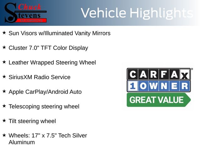 At Chuck Stevens Ford, we also include our exclusive Lifetime Powertrain Warranty at no additional cost. Serviceable at any certified repair facility nationwide.