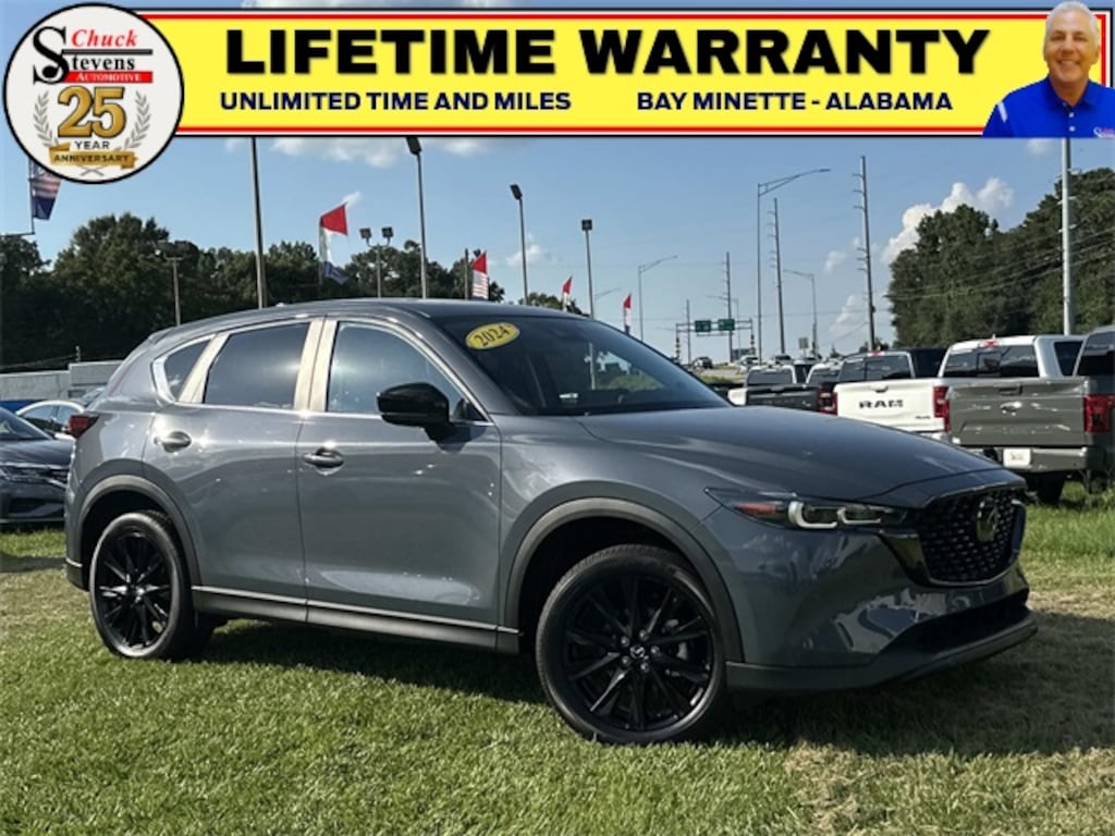 Welcome to Chuck Stevens Dodge Chrysler Jeep Ram Fiat located on HWY 31 South, Bay Minette Alabama. We are home of The Lifetime Powertrain Warranty at no additional cost. Grab a great deal with our low-price guarantee on this 2024 Mazda CX-5 while we still have it. At Chuck Stevens CDJRF our Pre-Owned vehicles have been fully inspected and reconditioned by a certified technician. The Polymetal Gray Metallic 2024 Mazda CX-5 with Black Leather interior is an outstanding choice.
