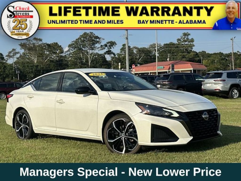 Welcome to Chuck Stevens Dodge Chrysler Jeep Ram Fiat located on HWY 31 South, Bay Minette Alabama. We are home of The Lifetime Powertrain Warranty at no additional cost. Grab a great deal with our low-price guarantee on this 2023 Nissan Altima 2.5 SR while we still have it. At Chuck Stevens CDJRF our Pre-Owned vehicles have been fully inspected and reconditioned by a certified technician. The White 2023 Nissan Altima 2.5 SR with black interior is a wonderful choice.