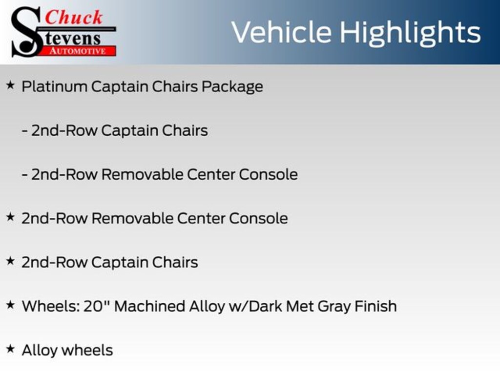 2nd-Row Captain Chairs, 2nd-Row Removable Center Console, Alloy wheels, Platinum Captain Chairs Package, Wheels: 20" Machined Alloy w/Dark Met Gray Finish.