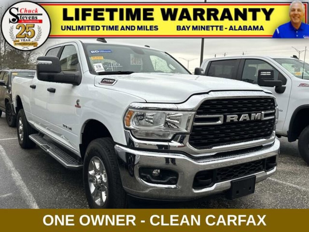 Welcome to Chuck Stevens Chevrolet located on HWY 31 South, Bay Minette Alabama. We are home of Lifetime Powertrain Warranty. A Lifetime Powertrain Warranty at no additional cost. Grab a great deal with our low-price guarantee on this 2024 Ram 2500 while we still have it. At Chuck Stevens Chevrolet our Pre-Owned vehicles have been fully inspected and reconditioned by a certified technician. The Bright White Clearcoat 2024 Ram 2500 with Diesel Gray/Black Cloth interior is a wonderful choice.