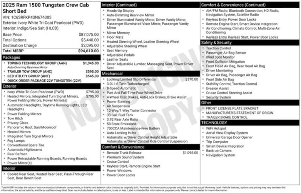 The Tungsten trim level adds a touch of premium style, with features like the MULTI-FUNCTION TAILGATE, which offers greater flexibility and convenience when loading and unloading cargo. The Towing Technology Group and Trailer Tow Group further enhance the truck's towing capabilities, making it a great choice for those with heavy-duty hauling needs.