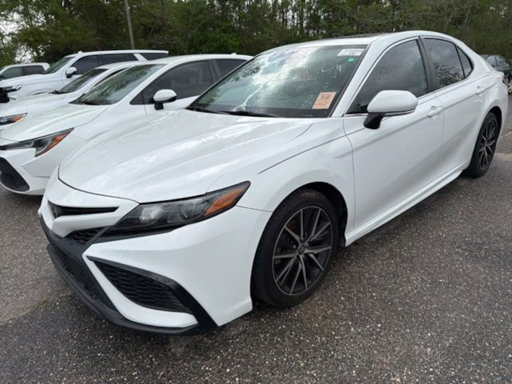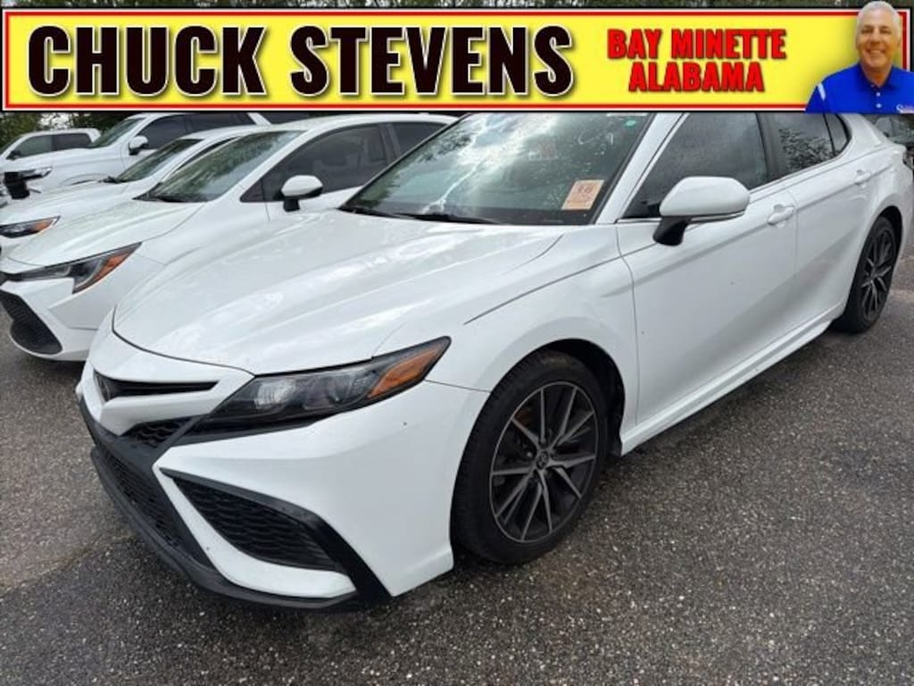 Welcome to Chuck Stevens Chevrolet located on HWY 31 South, Bay Minette Alabama. We are home of Lifetime Powertrain Warranty. A Lifetime Powertrain Warranty at no additional cost.Grab a great deal with our low-price guarantee on this 2021 Toyota Camry SE while we still have it. At Chuck Stevens Chevrolet our Pre-Owned vehicles have been fully inspected and reconditioned by a certified technician. The White 2021 Toyota Camry SE with Fabric Seat Trim w/Sport SofTex interior is a wonderful choice.- Blind Spot Monitor w/Rear Cross Traffic Alert- Heated Exterior Mirrors w/Turn Signal Indicators- Power Tilt/Sliding Moonroof- AM/FM radio: SiriusXM- Automatic temperature control- Remote keyless entry- Steering wheel mounted audio controls- Telescoping steering wheel- Tilt steering wheel- Low tire pressure warning- Alloy wheels- Wheels: 8.0J x 18 Black Machined-Finish AlloyThis 2021 Toyota Camry SE is the perfect combination of style, performance, and technology. With its sleek exterior and well-appointed interior, this Camry is sure to turn heads wherever you go. The 2.5L I4 DOHC 16V engine paired with the 8-Speed Automatic transmission delivers an impressive 28 city/39 highway MPG, making it both powerful and efficient.Beyond its dynamic driving capabilities, the Camry SE is loaded with a host of advanced features designed to enhance your driving experience. The Blind Spot Monitor with Rear Cross Traffic Alert helps you navigate busy roads with confidence, while the Power Tilt/Sliding Moonroof lets you enjoy the great outdoors from the comfort of your car. The AM/FM radio with SiriusXM and steering wheel-mounted audio controls keep you connected and entertained on your commute.Comfort and convenience are also prioritized in this well-equipped Camry. Automatic temperature control, remote keyless entry, and a telescoping steering wheel ensure you and your passengers can travel in complete comfort. The Fabric Seat Trim with Sport SofTex upholstery provides a premium feel, while the alloy wheels and black machined-finish add a touch of sporty sophistication.Whether you're looking for a reliable daily driver or a versatile family vehicle, this 2021 Toyota Camry SE is sure to exceed your expectations. Experience the difference for yourself and schedule a test drive today. We're confident you'll be impressed by the quality, performance, and value this Camry has to offer.LIFETIME POWERTRAIN WARRANTY PROGRAM is included at no additional charge for all vehicles that have less than 80,000 miles. It is one of the most comprehensive powertrain warranty programs in the market. See dealer for details.