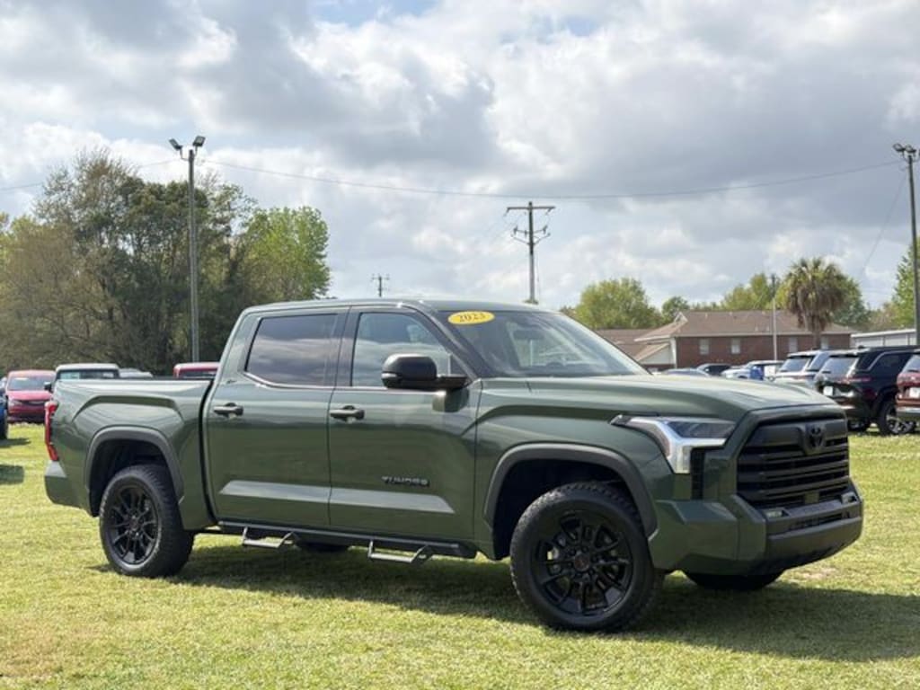 Welcome to Chuck Stevens Dodge Chrysler Jeep Ram Fiat located on HWY 31 South, Bay Minette Alabama. We are home of The Lifetime Powertrain Warranty at no additional cost. Grab a great deal with our low-price guarantee on this 2023 Toyota Tundra while we still have it. At Chuck Stevens our Pre-Owned vehicles have been fully inspected and reconditioned by a certified technician. The Army Green 2023 Toyota Tundra with Black Cloth interior is a fantastic choice.