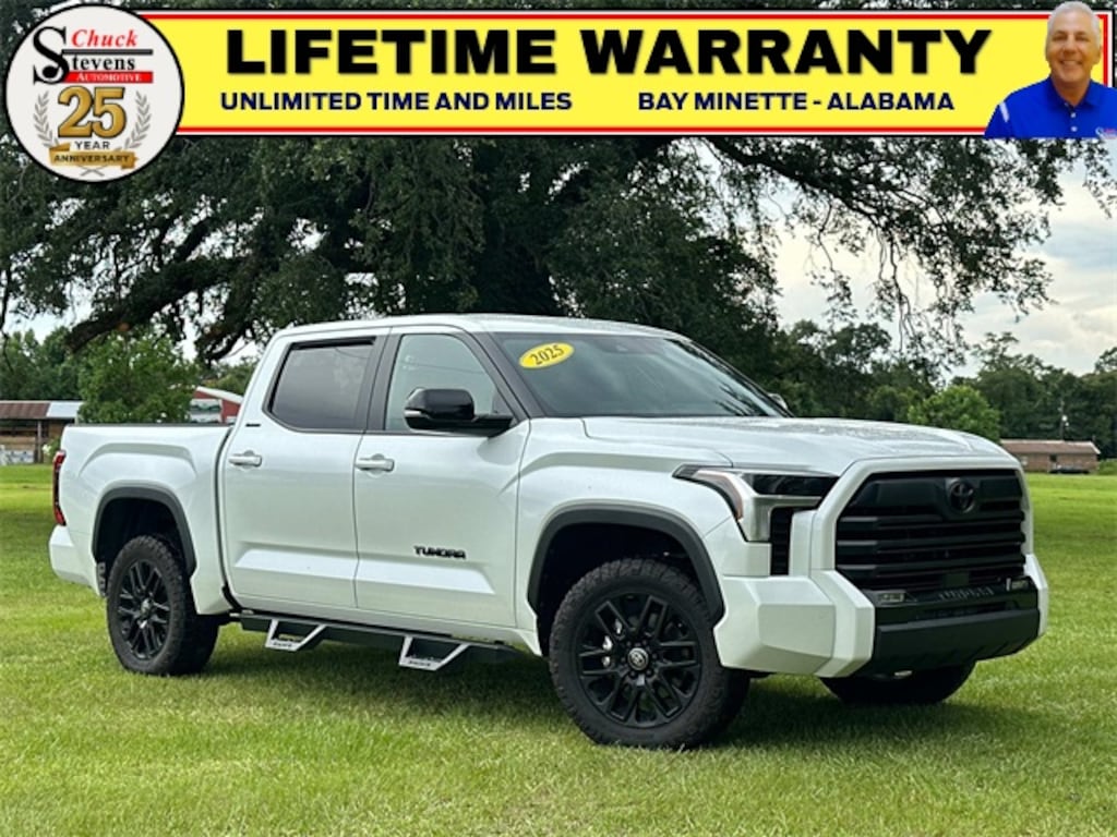 Welcome to Chuck Stevens Dodge Chrysler Jeep Ram Fiat located on HWY 31 South, Bay Minette Alabama. We are home of The Lifetime Powertrain Warranty at no additional cost. Grab a great deal with our low-price guarantee on this 2025 Toyota Tundra while we still have it. At Chuck Stevens CDJRF our Pre-Owned vehicles have been fully inspected and reconditioned by a certified technician. The White 2025 Toyota Tundra with Black w/Fabric Seat Trim interior is a fantastic choice.