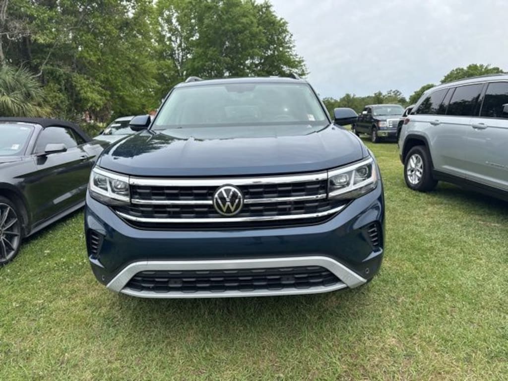 The exterior of this Atlas is finished in a striking Blue color, complemented by the stylish 20-inch alloy wheels. Step inside and you'll be greeted by the spacious and well-appointed interior, featuring Perforated V-Tex Leatherette Seating Surfaces, dual-zone automatic climate control, and a state-of-the-art infotainment system with an 8-inch touchscreen display.